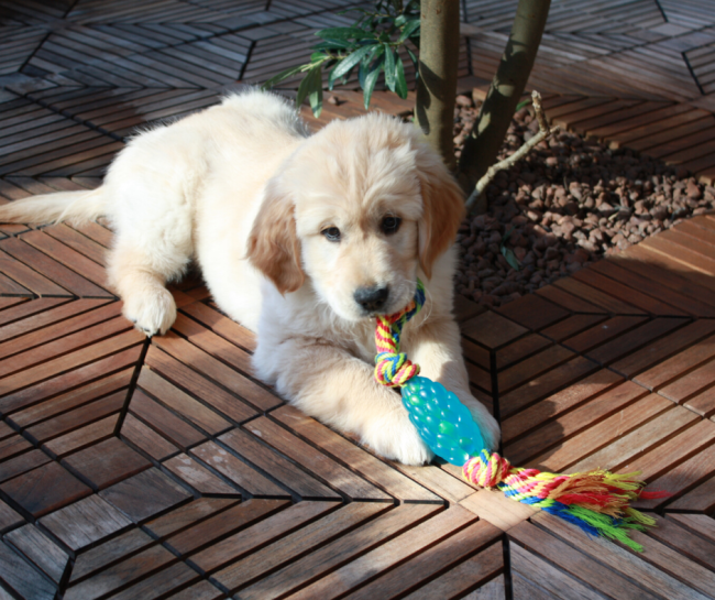 Puppy's krijgen last van hun tandjes als ze hun melkgebit wisselen, zo tussen de 4 en 7 maanden. Als de nieuwe tandje hun weg naar buiten zoeken kan dit een vervelend gevoel zijn voor je pup. Je kunt de puppy helpen om de pijn een beetje te verzachten. Bevroren wortels, rubberen bijtringen, Kong's met bevroren vulling of een nat touw dat je eerst in de vriezer stopt: allemaal dingen waar je hondje lekker op kan kauwen en die tegelijkertijd de pijn wat verzachten.